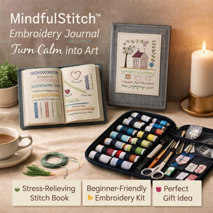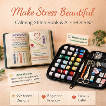 Our guided journal is thoughtfully designed to grow with you. You’ll begin with simple, foundational stitches and gradually move toward more detailed techniques — all at a comfortable, natural pace. Each page builds confidence step by step, so no prior experience is ever needed. Just curiosity and a love for creating.